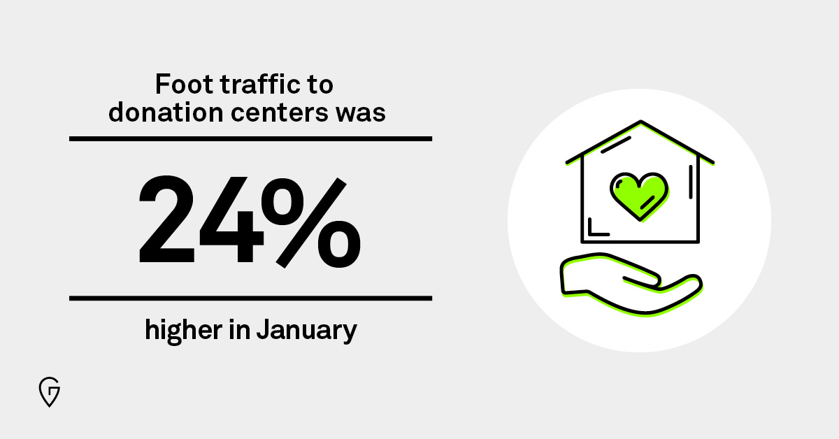 According to foot traffic trends, this year’s spring purge started early. Our data shows foot traffic to donation centers was 24% higher in January 2019 than every month in 2018 on average.